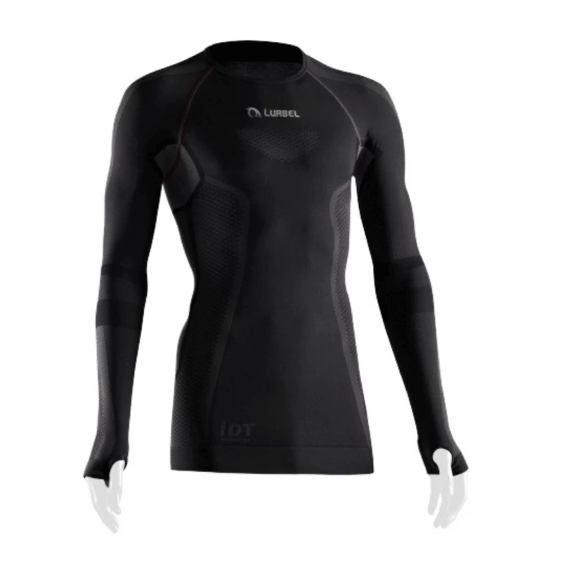 La camiseta térmica Lurbel Cristallo manga larga tiene un diseño ergonómico con áreas específicas para mayor refrigeración y evacuación del sudor.