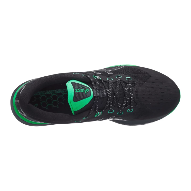 Mediasuela y suela exterior configuradas, con su espacio longitudinal mueve el centro de masa contribuyendo a la reducción de la pérdida de energía en cada zancada.