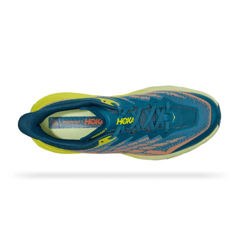 Las Speedgoat, un caballo de batalla diseñado para senderos técnicos, regresan en una versión renovada desde la suela hasta los cordones. Para mejorar el agarre y la potencia de frenado en terrenos sueltos, esta bestia de trail se ha actualizado con Vibram® Megagrip con taco de tracción. La quinta edición de las Speedgoat, 15 gramos más ligera y mucho más adherente, presenta muchas innovaciones para mejorar el rendimiento. La reducción de peso se debe a que cuentan con menos capas superpuestas, lo que logra también una construcción más sostenible.