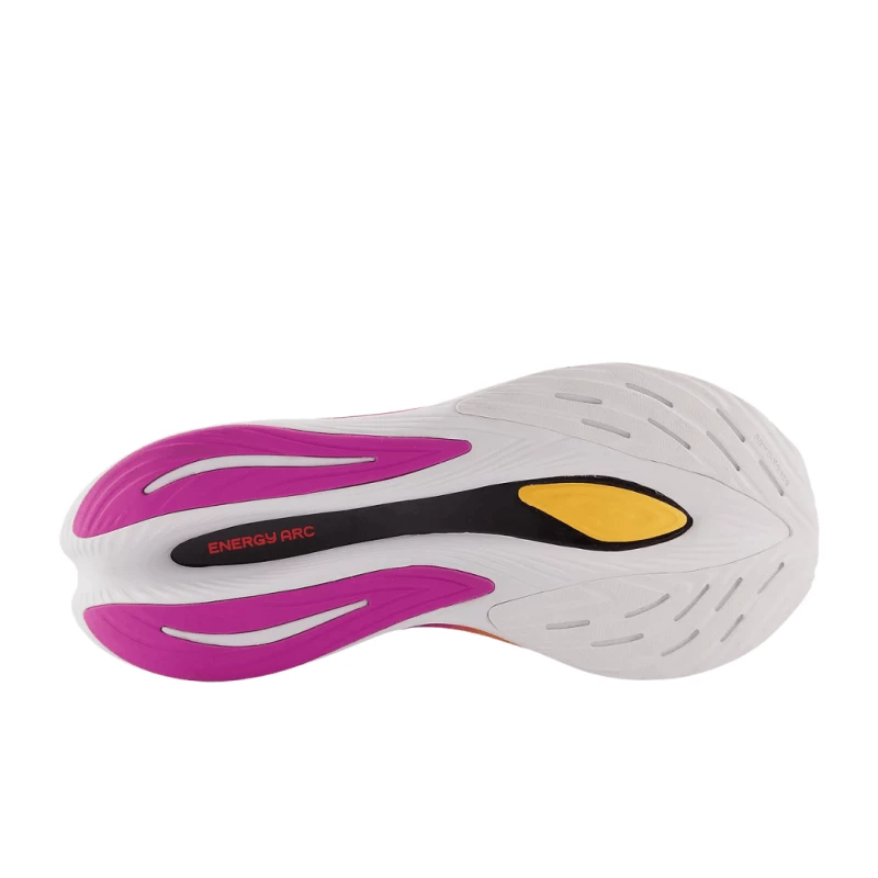 - Con Energy Arc: el Energy Arc combina la geometría de la placa de fibra de carbono con un canal hueco situado estratégicamente en la entresuela. Este diseño permite acumular más energía para luego liberarla en cada zancada.
