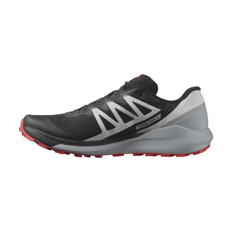 La pala combina una sujeción del pie precisa, especialmente alrededor del talón, tejidos resistentes y malla antipartículas.