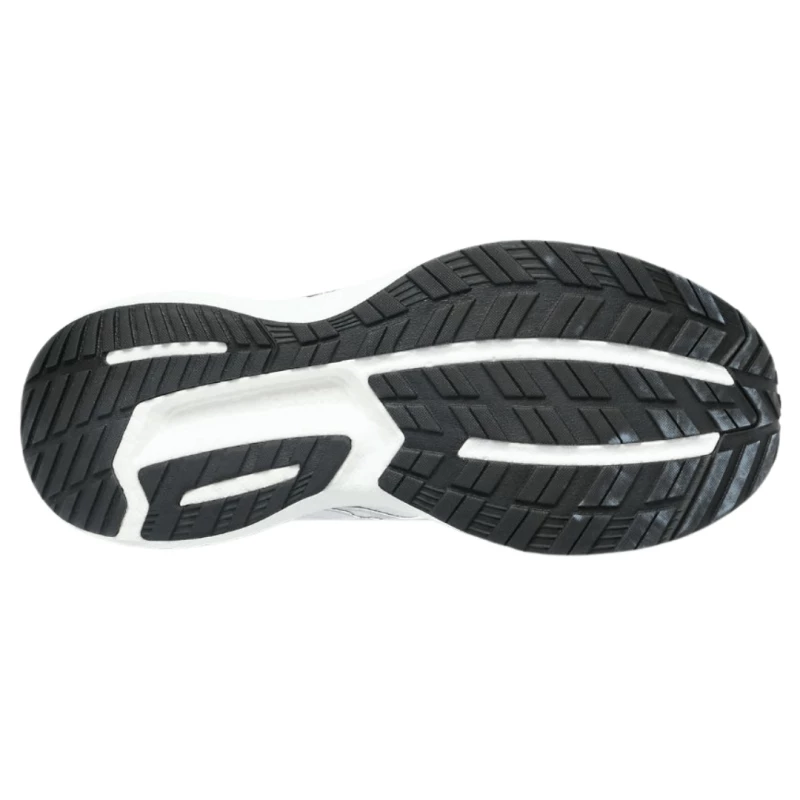 La tapa del talón y el buen funcionamiento del sistema de cordones proporcionan una guía cómoda mientras se corre. En la entresuela completa y en la suela superior, la PWRRUN+ ofrece un nivel muy alto de amortiguación, con lo que cada paso se absorbe suavemente.